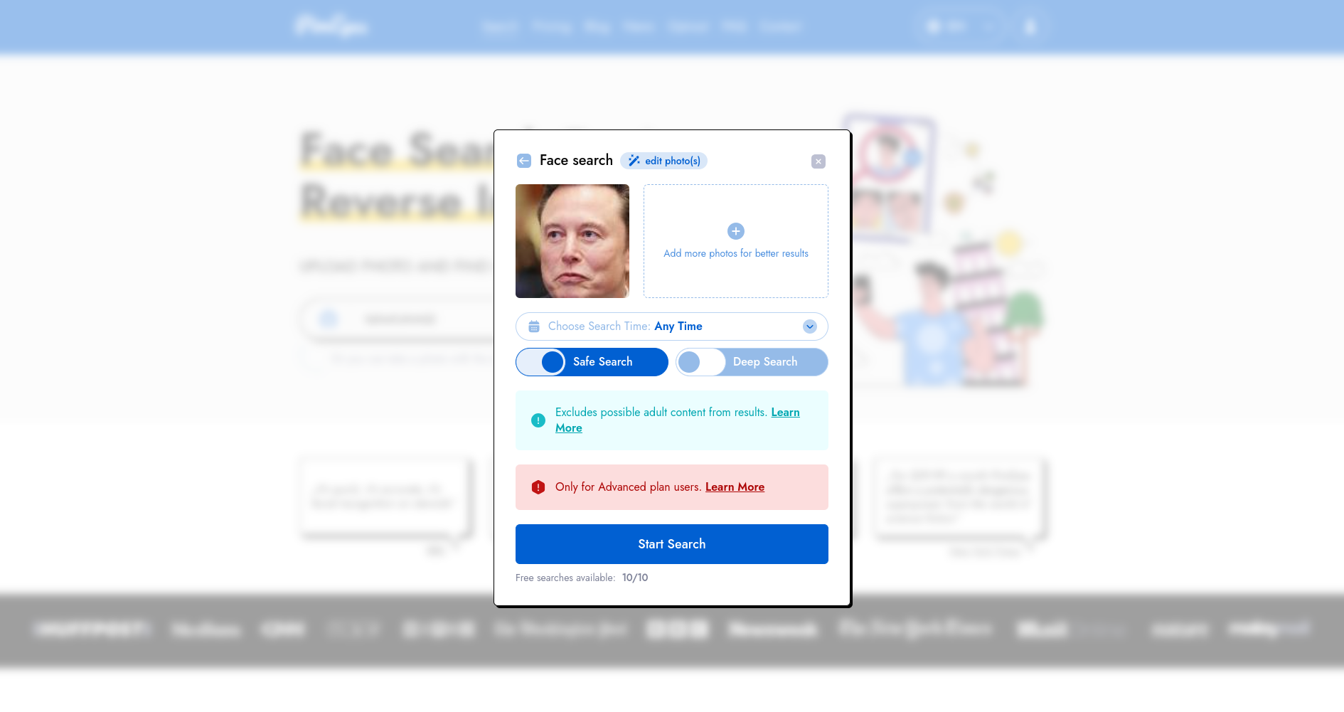 PimEyes es muy fácil de usar. Solo tenemos que hacer clic en “Subir Foto” y luego cargar una imagen del objetivo. En este caso, usamos una imagen de Elon Musk: