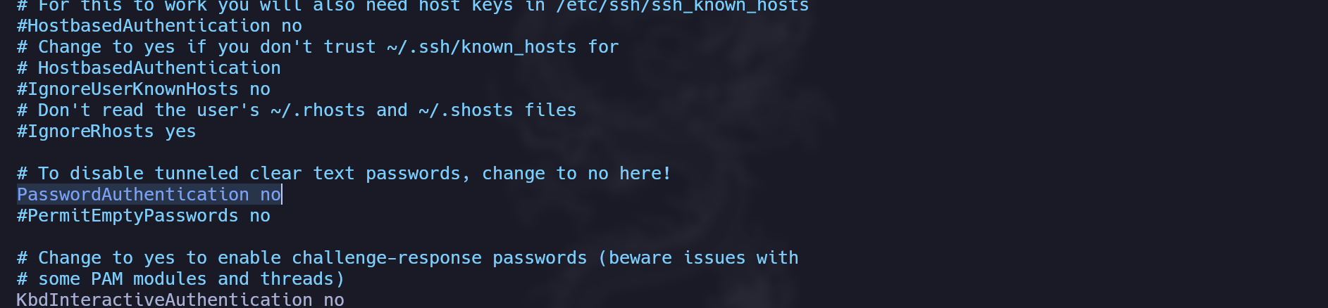 Ahora vamos a configurar el servidor para que solo acepte autenticación por llave pública. Para eso, ejecutamos: