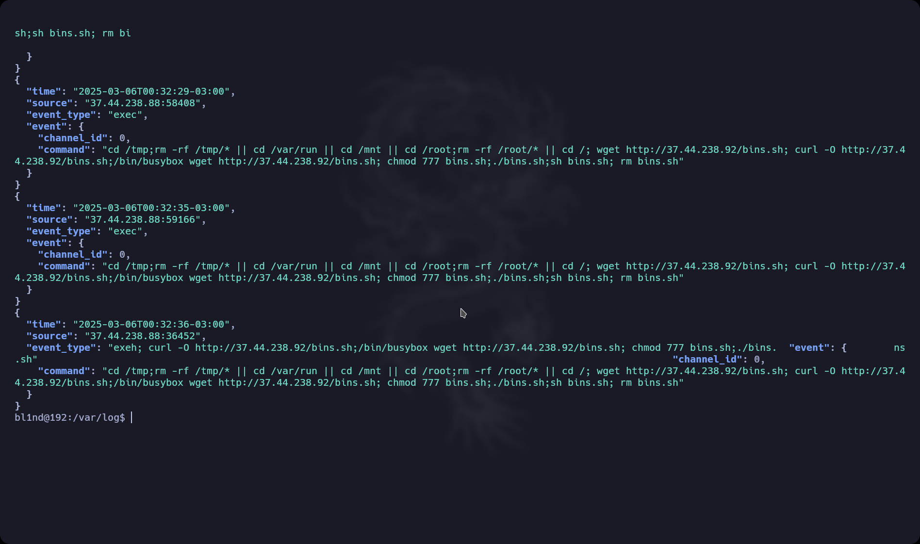 Este tipo de comandos muestra que el bot está intentando comprometer aún más el servidor, probablemente para instalar algún malware o establecer un punto de acceso persistente desde donde pueda seguir controlando el equipo. Además, parece que está intentando ocultar sus huellas y eliminar evidencia para que no se detecte tan fácilmente (están muy pillos con esto).