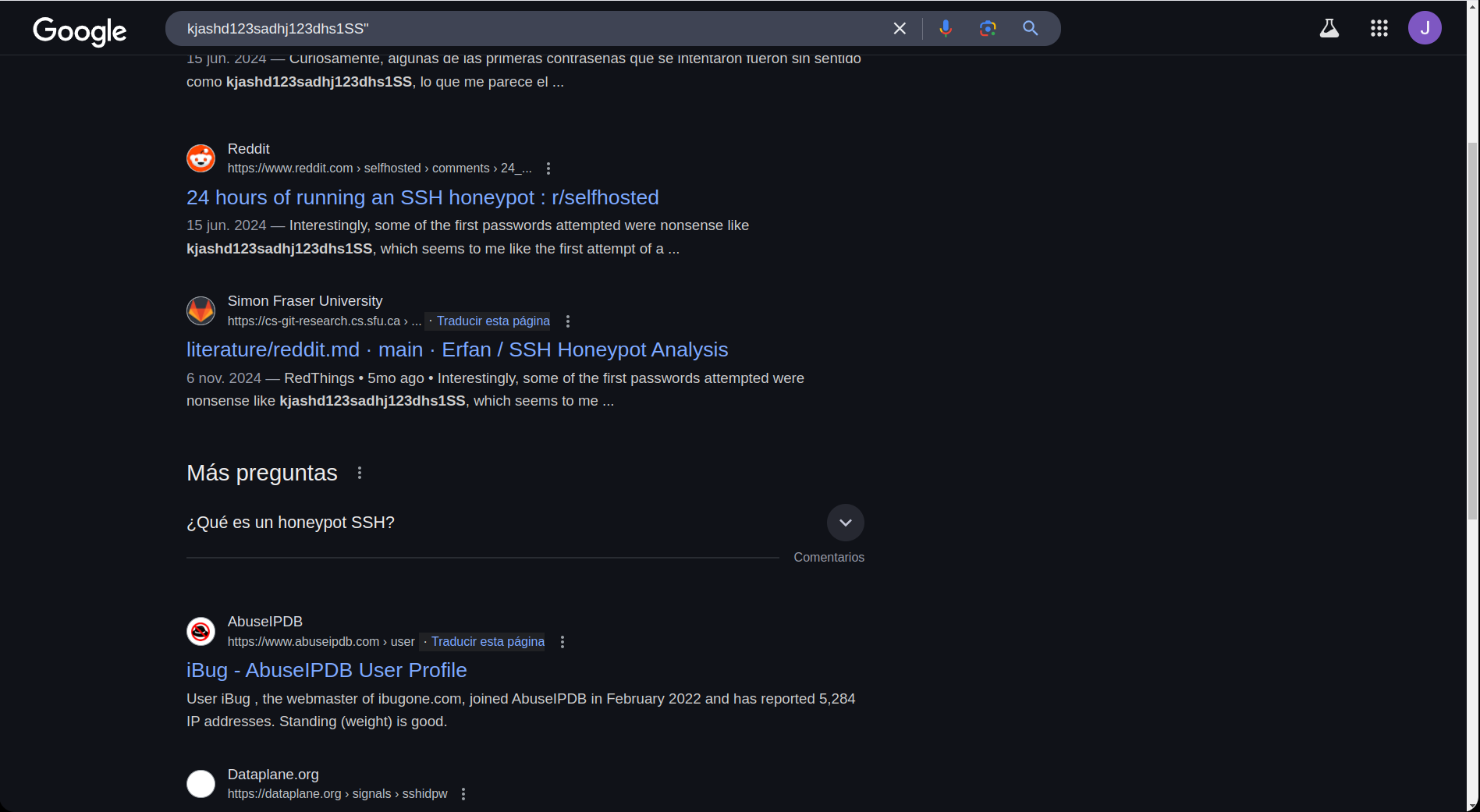 Lo más curioso fue que todos los intentos parecían seguir patrones similares: trataban de ingresar con contraseñas comunes como “root”, “admin”, “123456”, e incluso con contraseñas complejas como “kjashd123sadhj123dhs1SS”, las cuales claramente indican que están siendo utilizadas por bots que intentan explotar servidores vulnerables.