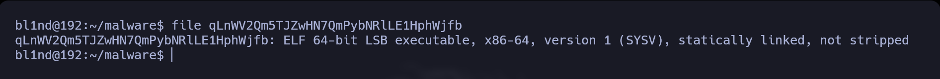 En este caso lo que vamos a comenzar a hacer es enumerar un poco el binario descargado. Me voy a traer el binario a mi equipo local y lo primero que voy a hacer es usar el comando File, este fue el resultado: