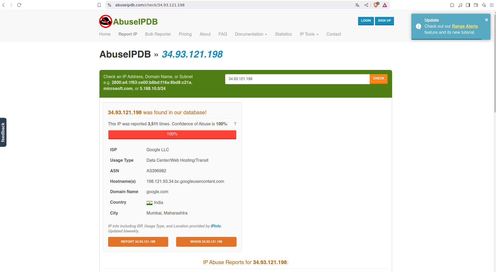 Busqué en Internet si estas IPs ya habían sido reportadas anteriormente, y efectivamente, varias de ellas ya estaban marcadas como maliciosas.