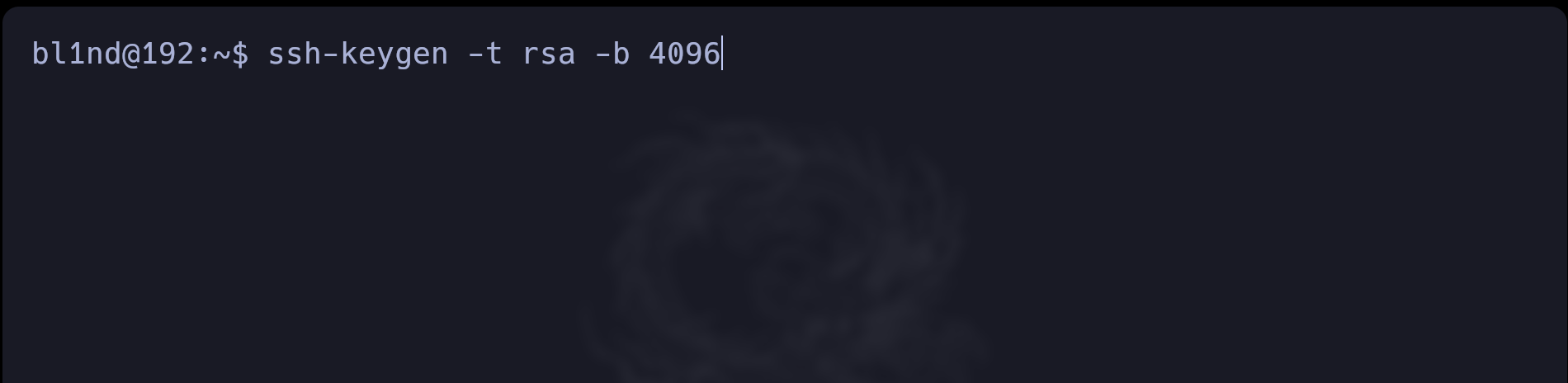 Usamos el comando ssh-keygen. -t es para indicar el tipo de algoritmo de encriptado, en este caso, RSA. Con -b especificamos el tamaño en bits de la llave (cuanto más grande sea, más va a demorar en crearse).