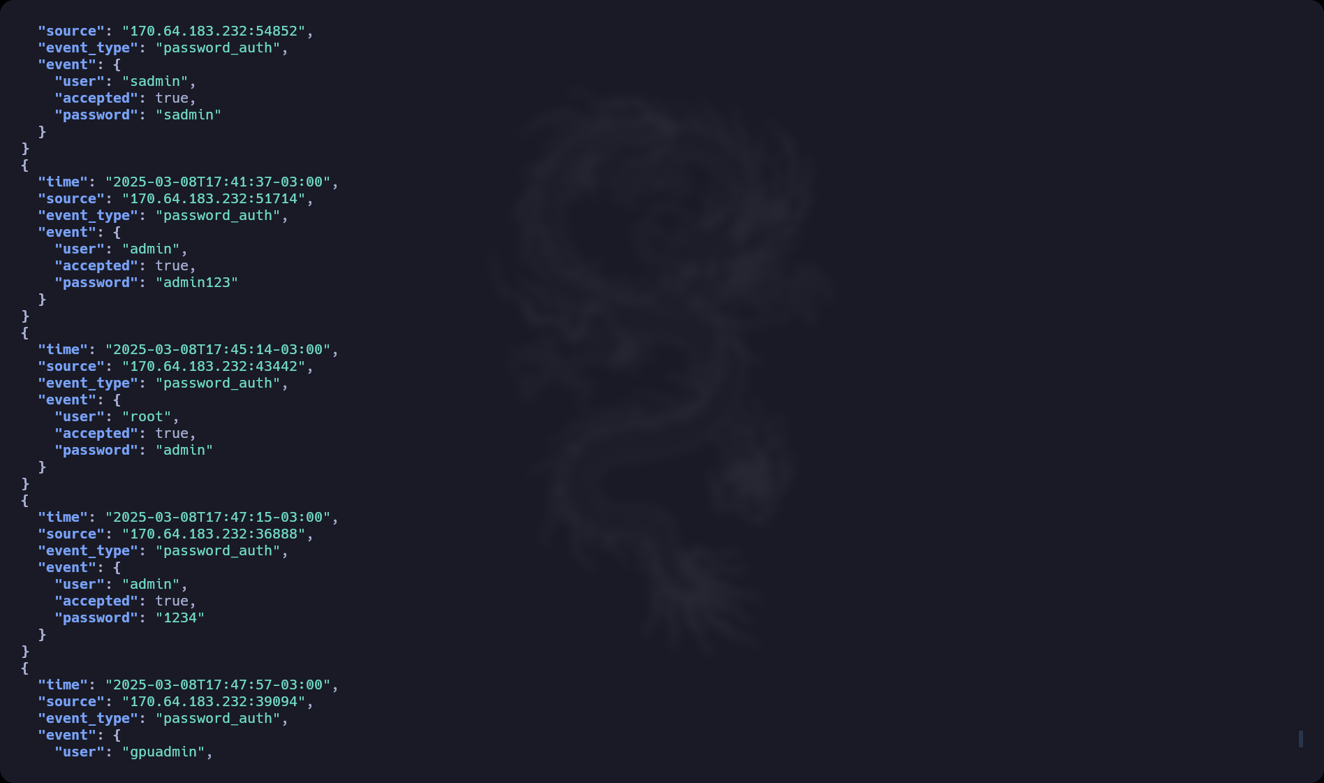 La primera impresión que tuve fue que esos bots eran extremadamente persistentes, intentando una y otra vez con diferentes combinaciones de usuarios y contraseñas.