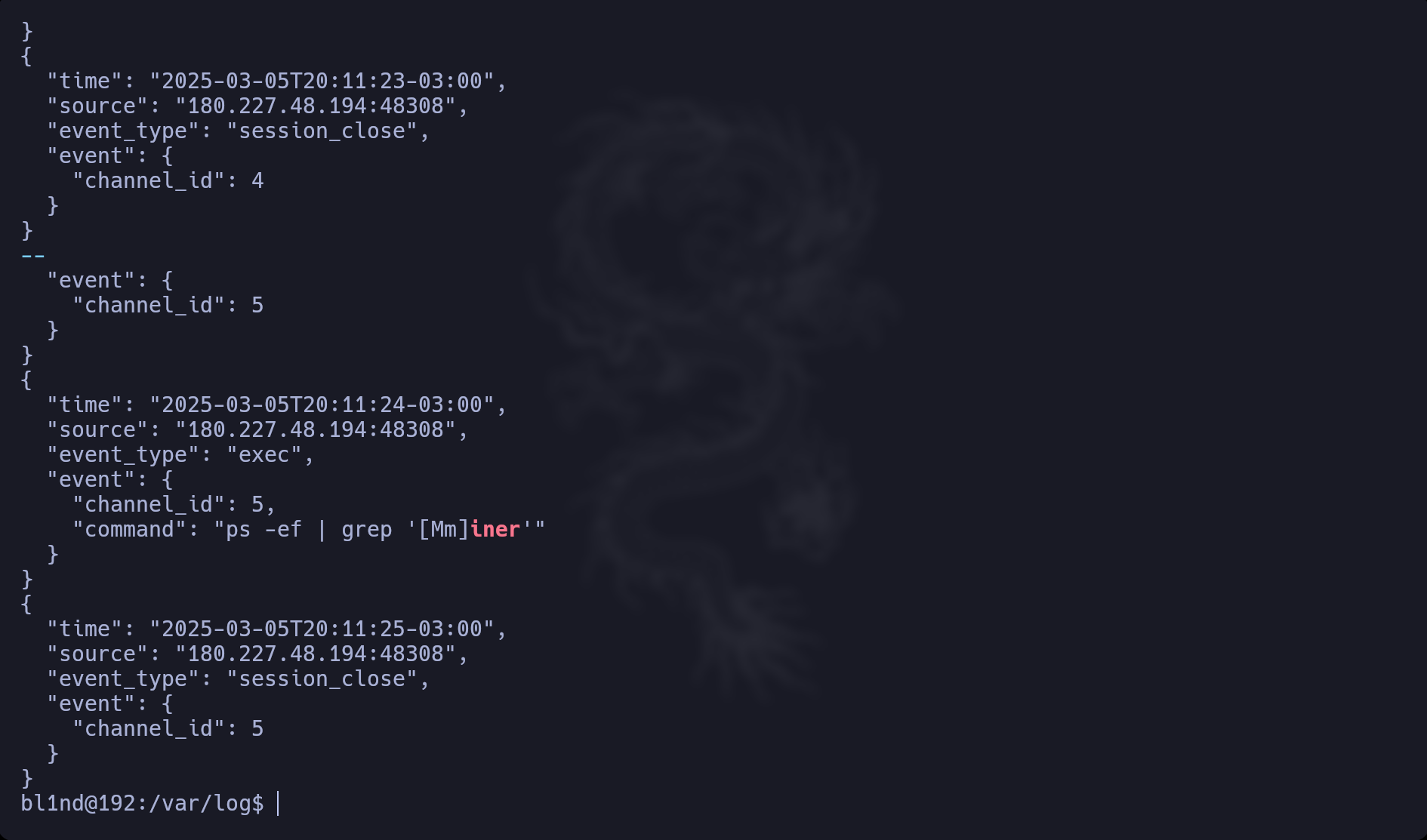 Una vez que tengas todo configurado y funcionando, sshesame empezará a registrar las conexiones de los bots. Los logs se mostrarán por defecto en la salida estándar (stdout). Si configuraste un archivo de logs, se guardarán en el lugar indicado.